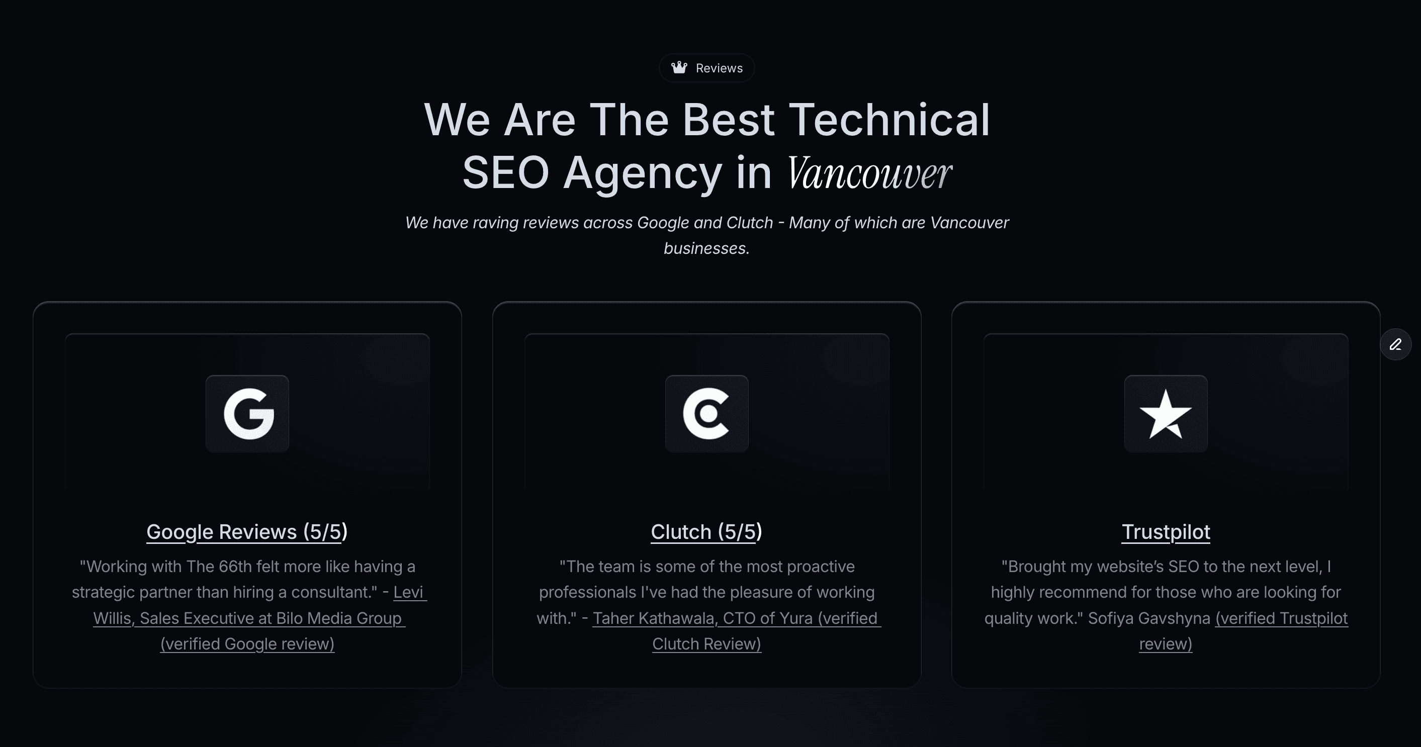 I just added this social proof section with the heading we found to my existing page for Technical SEO Agency in Vancouver.