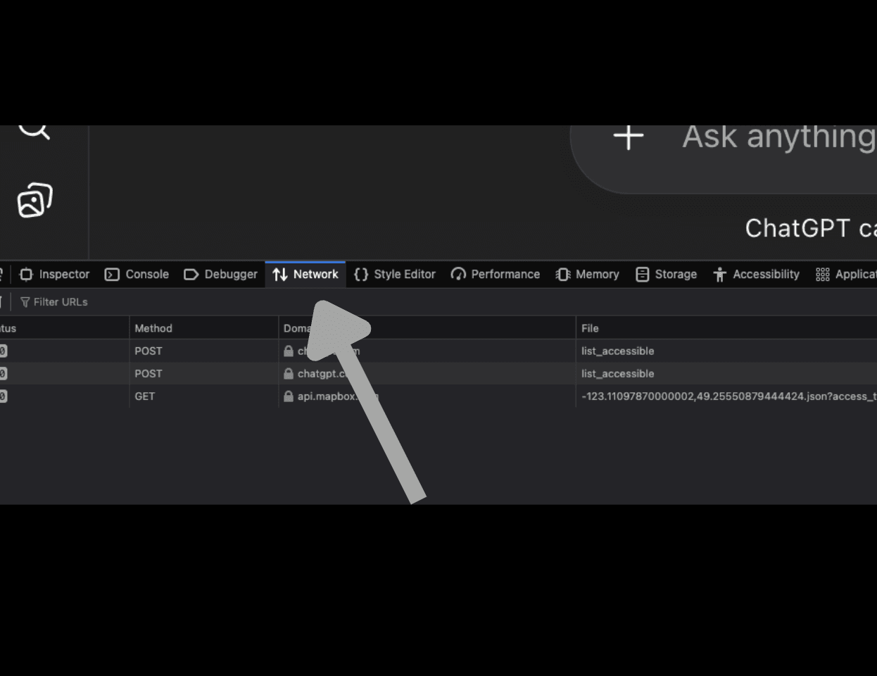 This works in Chrome (and Chromium-based browsers like Edge or Brave). You will use the browser's built-in developer tools to inspect network traffic and find the actual queries ChatGPT sends.