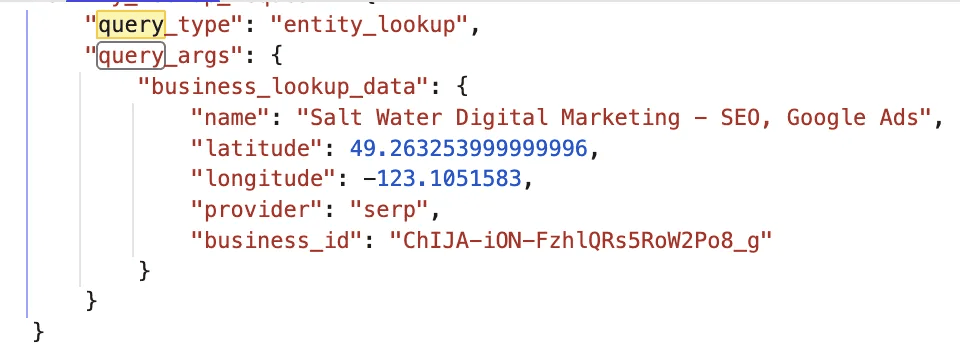 Entity lookups happen when you ask about local businesses, restaurants, services in a specific area, or anything requiring location data. The name field shows exactly what business or entity ChatGPT looked up.
