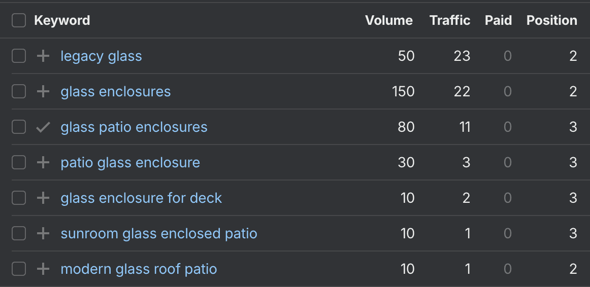 In under three-six months, Legacy Enclosures went from stagnant organic visibility to measurable, compounding search growth driven by high-intent keywords and improved authority.